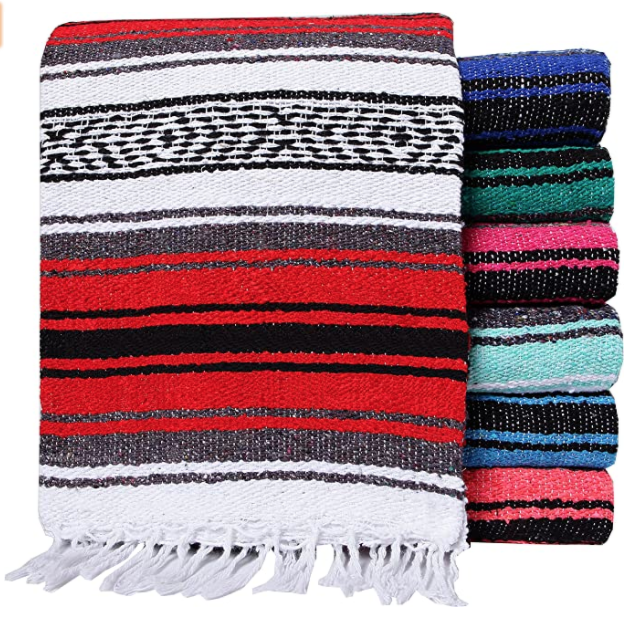 <a href="http://Manta de yoga mexicana de El Paso Designs de 51 x 74 pulgadas, ideal para yoga, camping, picnic, playa, ropa de cama, decoración del hogar, tela suave, color al azar, Large, 1» target=»_blank» rel=»noreferrer noopener»>Las mantas mexicanas para mi son las mejores, no solo por gruesas y calientes sino porque además son del tamaño ideal para cubrirte si estas sentado en una meditación o para cubrirte por completo a la hora favorita de todos: ¡savasana time!